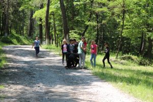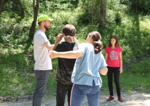 Cel mai distractiv joc a fost acela de a face slalom printre copaci şi alte elemente de vegetație din poiana în care au avut loc activitățile. Copiii au fost provocați să lucreze în echipă, să își aleagă un lider, să stabilească un traseu și apoi să îl parcurgă cu ochii închiși, fiind conduși de liderul echipei care trebuia să rămână cu ochii deschiși și să ghideze pe ceilalți coechipieri printre copaci și vegetație de-a lungul traseului prestabilit. Jocul a contribuit la dezvoltarea spiritului de echipă şi a leadership-ului, la creșterea încrederii în colegi, la îmbunătățirea comunicării între aceștia și la asumarea pe rând a rolului de lider. Totodată, în această manieră interactivă şi creativă, ei şi-au sporit gradul de conştientizare cu privire la două aspecte importante pentru atingerea obiectivului proiectului: importanţa fiecărui element (vegetal, animal sau uman) pentru menţinerea echilibrului în natură şi necesitatea de a „ocoli” (în sensul de a proteja, a nu degrada) unele elemente din natură sau unele areale naturale importante pentru conservarea biodiversităţii.